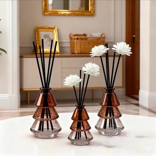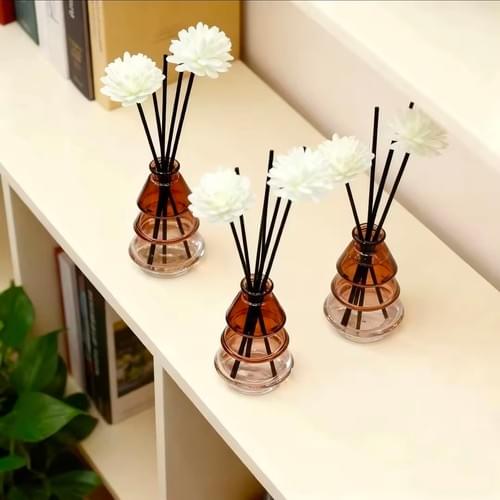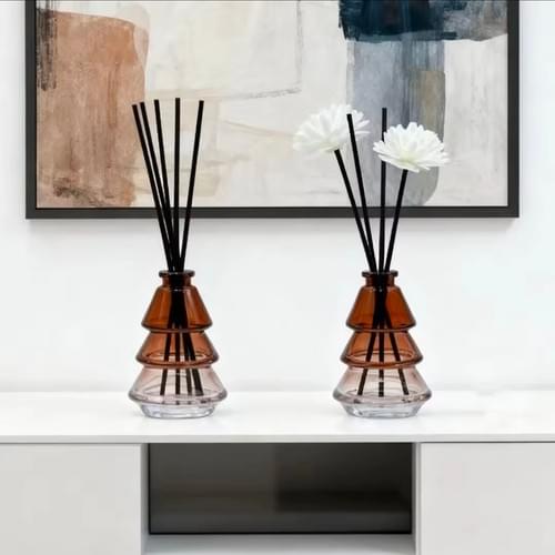 زجاجة معطر جو مميزة بتصميم جميل وشكل شجرة، بلون العنبر والشفافية